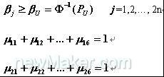 第一个约束条件被称之为可靠性约束条件,第二个约束条件被称之为选择约束条件,很显然上式所描述的离散公差优化设计已转化为一个整数规划问题。