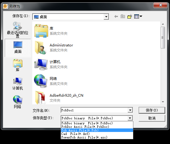 PcbDoc Ascii File (*.PcbDoc) 为对应的dxp,2004或其他高版本AD.*等软件的文件类型