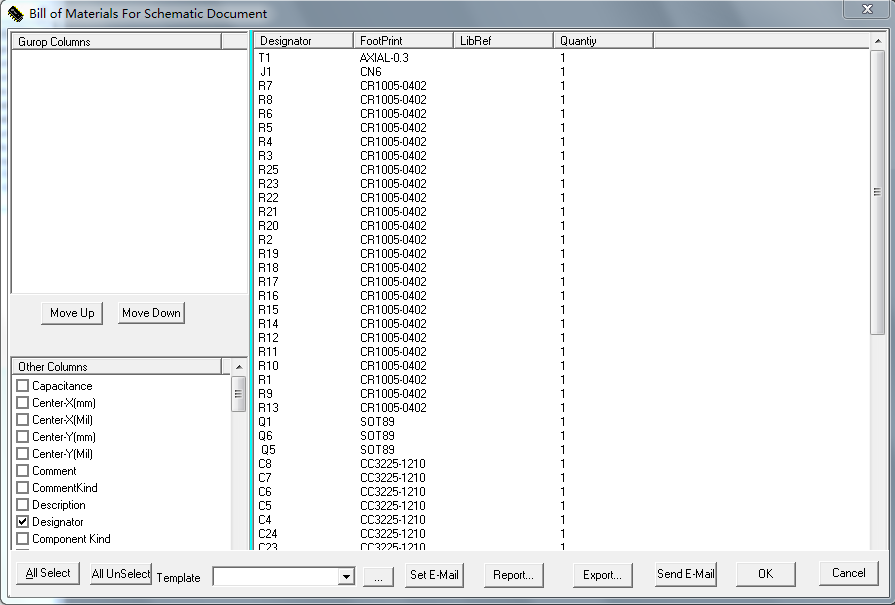 2.执行Report>Bill of Materials .弹出一个窗口如图2: