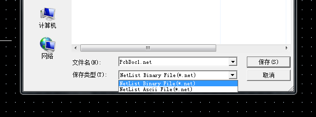 4.选择你所需要导出的网络表的格式:Net Binary file(*.net)为青越锋格式,Net Ascii file(*.net)为protel格式。
