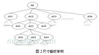 分枝估界法已成功的解决了整数规划问题,其过程为:对有约束条件的最优化问题(其可行解为有限数)的所有可行域空间反复地分割越来越小的子集(即分枝),并且计算每一个子集的的下界(即估界)。在每次分枝之后,凡是界限越出已知可行解值的那些子集就不再进一步分枝。这样可行域可删除许多子集。这样可行域内可以删除许多子集。这种分枝继续进行知道找到可行解为止,这样可行解的值不大于任何子集的界限。由于公差与加工成本、公差与约束条件函数的可靠性指标之间的反向变化,因而采用了具有特色的分枝和剪枝技术的分枝估界算法。若尺寸链有n个尺寸,其枚举树如图2所示,该树共有n支。第I层单个节点的分枝数Hi 代表第I个尺寸公差等级可供选择的数,每个节点可用n维序列矢量Q来描述,如Q=[1,3,Hi,0,…,0]