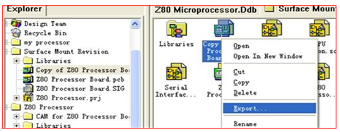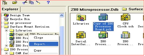 图1 2.另存为选择ASCii 文件类型然后选择数据库的源文件夹surface mount revision ,如图,以及单击左侧浏览器再下面树状的的文件夹中展开刚才另存的PCB 文件,单击右键选择Export,保存到你自己的目录下面。如图2和图3(两种操作一样)