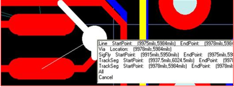 图2 下面我们可以记录当前出现LINE的坐标位置(*,*),然后再依次撤销原来的打散disperse components, unroute即可(不要做任何其他修改删除操作),操作后查看刚才记录的坐标位置,找到其所在的位置,如下图,选择此段LINE 就会超亮显示。