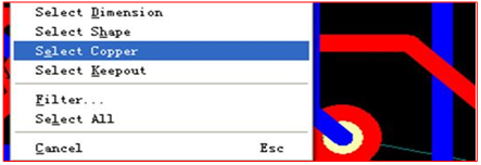 图3 同上也可以直接在空白处单击右键选择:Select > Copper ,然后直接单击需要选择的LINE 线删除即可!