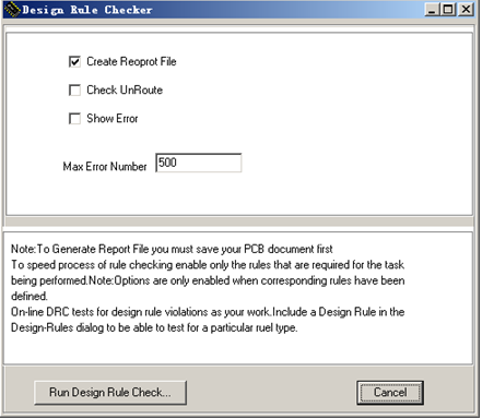 1、设置DRC规则 2、单击Tools >> Design Rule Check…菜单,将弹出如图1所示的对话框。