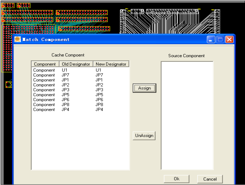 >>再次在弹出的元器件对应网络的匹配对话框中选择