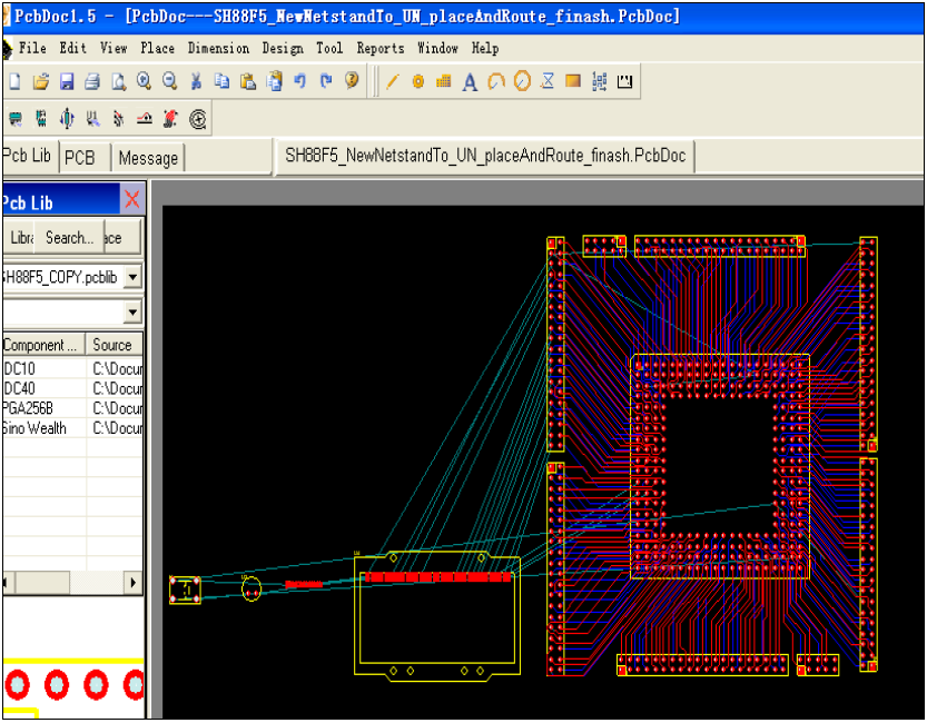 原始PCB文件中的布局布线都完整的被复制过来,当前PCB文件中布局布线的元器件以及网络都未做任何的改变,之后再完成剩余元器件的布局布线。