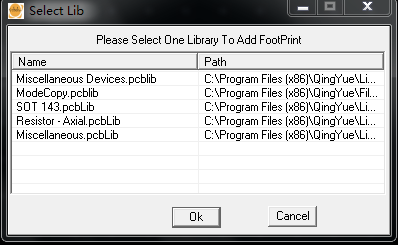 2.选择指定该元器件所要保存到的指定库文件,点击OK即可。