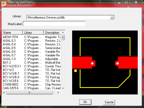 1.在PcbDoc中打开一个PCB文件,然后选择一个元器件右键选择Edit>Footprint.弹出窗口如图1: