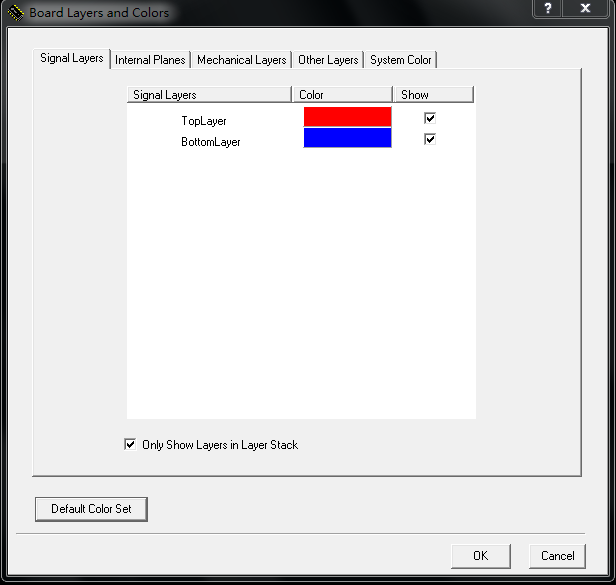 1.支持Design>Board Layers and Colors,弹出窗口如图1: