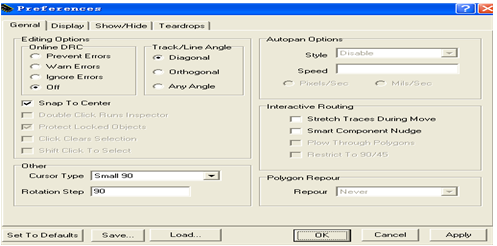 Online DRC 设置当期布局布线的在线检查 Prevent Errors 阻止错误;Warm Errors 警告错误;ignore
