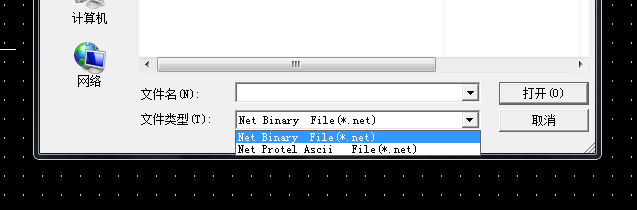 2.选择你所导入的网络表的文件格式:Net Binary file(*.net)为青越锋格式,Net Protel Ascii file(*.net)Protel格式.