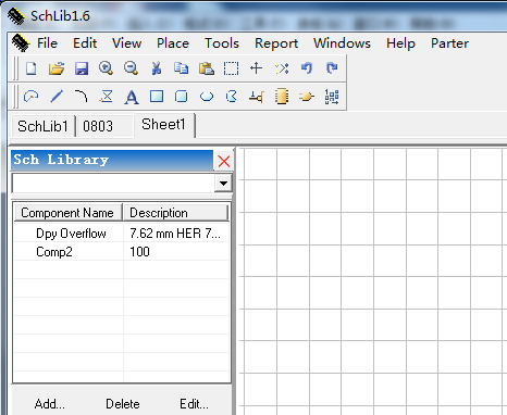 2.点击另外一个库文件,在左侧浏览器下点击Add,添加一个元器件。如图1: