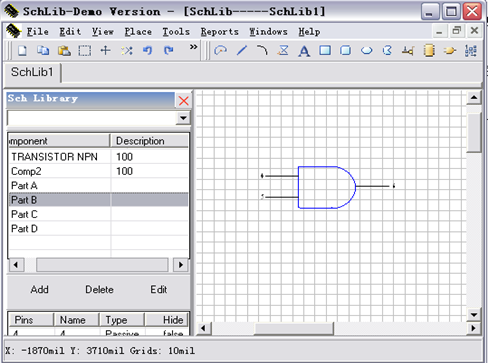 3.现在我们创建元件的第一个部件,包括它自己的引脚,在后面会逐条详细叙述。在本例中第一个子件将会作为其它子件的基础,除了引脚标识符会有所变化,其它不变。