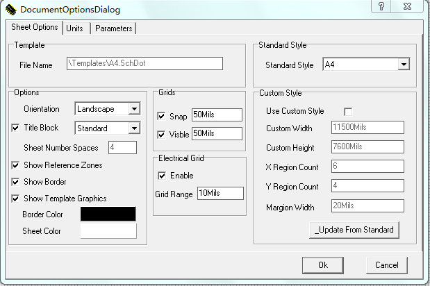 2.在当前的Sheet Options中可以设置对应的文本显示栅格以及电气捕捉栅格,标题栏,文本背景以及采用的文本大小格式和自定义的文本大小的设置等Unit 栏下时设置当前需要使用的单位为公制还是英制。